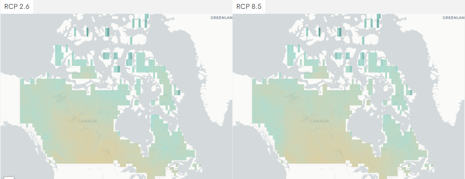 Canada’s agriculture and agri-food sector accounted for roughly 12.5% of total employment in 20161. A changing climate has direct implications for the agricultural sector, including extreme weather events, changing crop suitability, pest distribution, and water availability2,3, making it a priority for inclusion on ClimateData.ca. Canada’s agricultural sector is used to working with climate variability and has already implemented adaptation actions to reduce its risk to this variability. Access to climate model data can provide stakeholders in the sector with a better idea of how the climate is expected to change in their region and case studies provide examples of additional impacts and the use of climate data to better understand changing risks. The information available on ClimateData.ca is intended to inform adaptation by informing decision making, program priorities and investment decisions taken to manage additional risks of climate change.