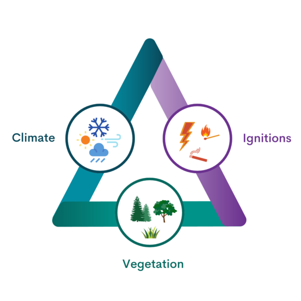 Also, as mentioned in the above section, many other factors combine to determine the pattern, frequency, and intensity of wildfires in a region, including the availability of fuel (i.e., vegetation), the land-use type (e.g., towns, topography), and ignition sources (e.g., lightning, human-caused fires). Therefore, the change in fire season length shown here does not predict with certainty that there will be more fires in the future. Instead, it is a metric for comparing two time periods to understand how fire danger may shift because of climate change.