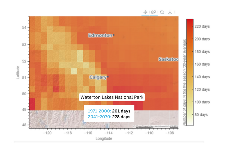 Case Study 1: Exploring projected changes in fire season length in Waterton Lakes National Park
